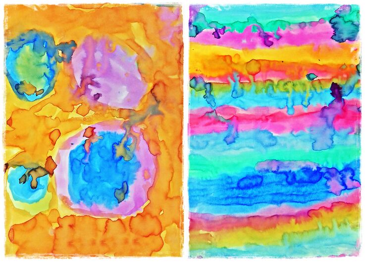 technique de peinture sur papier, utilisant de l’encre et de l’eau, avec des couleurs claires, pastel ou transparentes